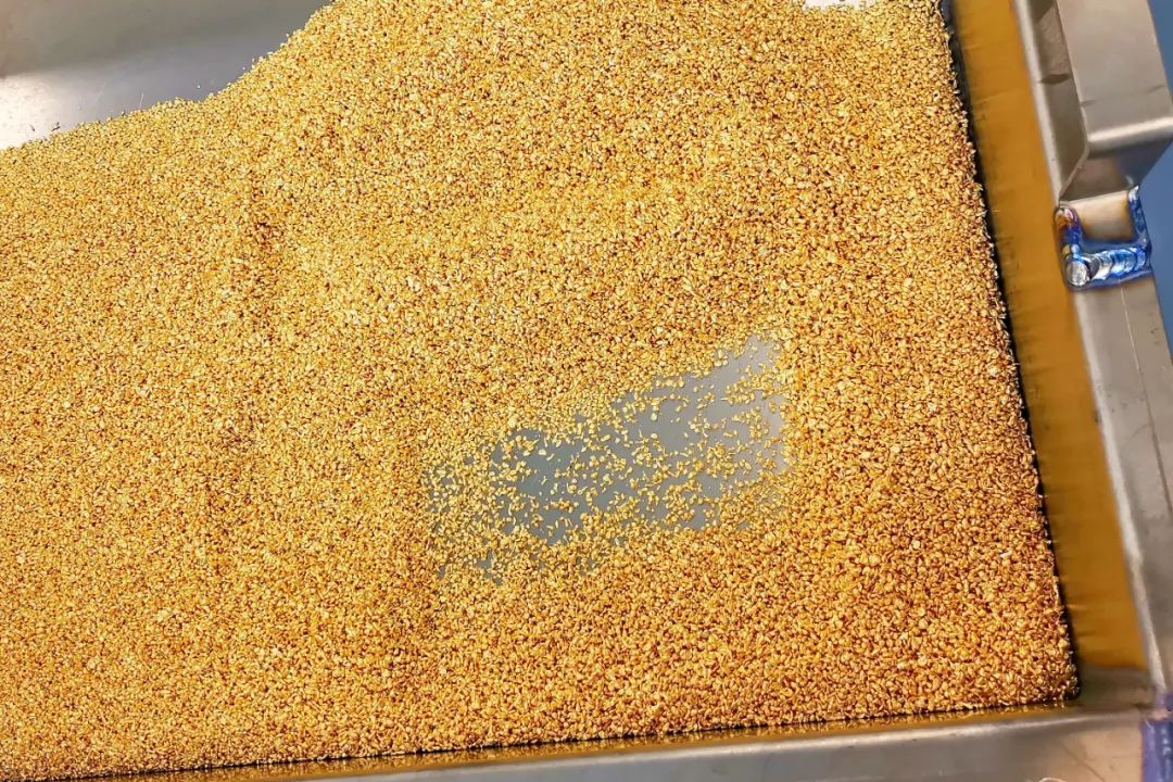 “溶金在溶金釜中進行,溶金釜中的黃金由固體變?yōu)橐后w,先把不能溶解的雜質(zhì)過濾掉,再通過管道輸送到還原釜中進行還原,然后將過濾好的液體金還原成固體海綿金,經(jīng)過清水清洗烘干后再次熔金,最終倒入模具中,凝固后取出過水冷卻擦干。”張文龍解釋說,“下面要準(zhǔn)備澆鑄生產(chǎn)工序,先把熔好的金塊放入制粒機,通過熔化,漏到水中,制成很小的金顆粒,方便后道工序配重。這個過程叫制粒?!?/span>